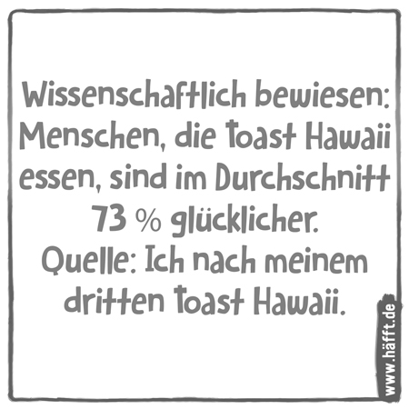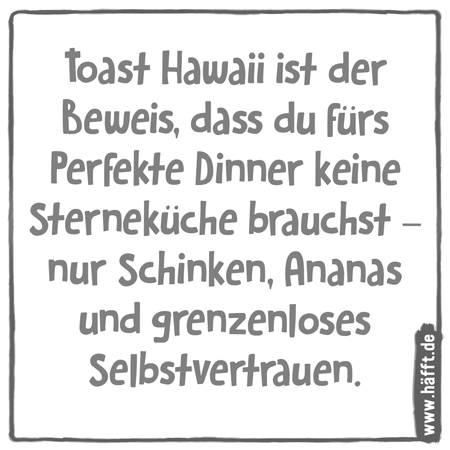 Am 20. Februar ist Toast-Hawaii-Tag. Zur Feier des Tages gibt's ein paar Sprüche über den kulinarischen Klassiker auf deutschen Esstischen. Schließlich ist Toast Hawaii nicht nur ein Essen, es ist eine Lebenseinstellung: Weniger nachdenken, mehr genießen. 😄🍍🧀