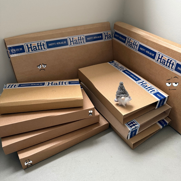 Und seitdem sitzen diese armen Pakete bei uns im Büro … und warten. Und warten.